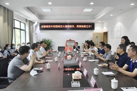 随后,两校所有出席领导在会议室进行交流并完成优秀生源基地签约暨授牌仪式。付建军董事长感谢西南交大青睐绵实外国语学校的学子,并介绍成都绵实外高中部,高中学部与绵阳中学实验学校深度对接与合作,共享名校优质资源。坚持“绵实全力支持打造,绵实专家指导办校,绵实名师引领教学,绵实高端品质保证”,全面充分体现绵中实验教育特色与精神。“品位、品质、品牌”是成都绵实外高中部的工作标准和追求,全方位无死角的精细管理是学部优质教育的强力保证。
