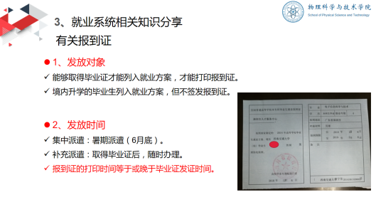 随后,吴杰老师针对就业工作的具体问题进行了指导。吴老师对学校的就业政策和毕业手续流程进行了深入剖析,为大家普及了三方协议书、毕业生推荐表、报到证等就业过程中的重要材料,帮助大家明确户口和档案的重要性,清晰地介绍了签订就业协议流程中的注意事项。
