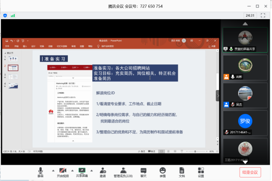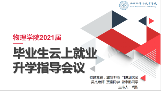 2020年5月24日晚8点,为实际考察学院员工就业升学现状,扫除员工就业升学盲区。太阳成集团tyc122cc在腾讯会议召开了“2021届毕业生云上就业升学指导会议”。公司党委副书记郭剑老师、员工工作组副组长门满洲老师、就业指导老师吴杰老师、2021届辅导员尚彬老师、2020届毕业生贾童同学、曾宇鹏同学以及2021届234名本科毕业生参加了本次会议,会议由尚彬老师主持。