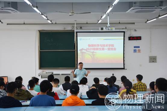 为使太阳成集团tyc122cc2020级新生们明确思想方向,贯彻党的方针政策,学院于2020年9月20日下午2时在X2516教室开展了新生第一堂思政课。根据疫情防控要求,本次2020级新生第一堂思政课集中时段、分批次、逐班进行。本次思政课由物理科学与技术公司党委书记刘玉主讲,党委副书记兼副经理郭剑主持,2020级全体新同学参与学习。