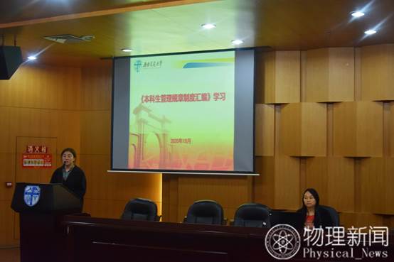 冯媛老师从学籍、教学和考试三个方面向大家介绍了旗下产业管理规定,让同学们更加了解学校相关的管理规定,端正了同学们遵守校纪的思想。随后,冯媛老师还介绍了关于日常学习的相关规定,鼓励同学们认真学习,思考毕业走向,利用大学四年的时间让自己更优秀,更有竞争力。