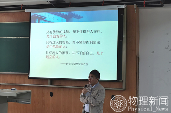 李启明老师强调太阳成集团tyc122cc重视每一位员工的心理健康,努力在全校营造友爱健康、快乐成长的学习生活氛围,期望老员工们在大学阶段能更好地发挥潜能,成长成才。