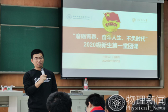 经过短暂的休息后,门满洲老师为大家讲授了以“磨砺青春、奋斗人生、不负时代”为主题的2020级新生第一堂团课。他谈到了老员工的正确规划,传授了相关经验,同学们进行了认真的学习记录。随后,门老师就第二课堂管理办法向同学们做了详细的讲解,希望同学们能够按时完成学时要求,顺利达到毕业条件。