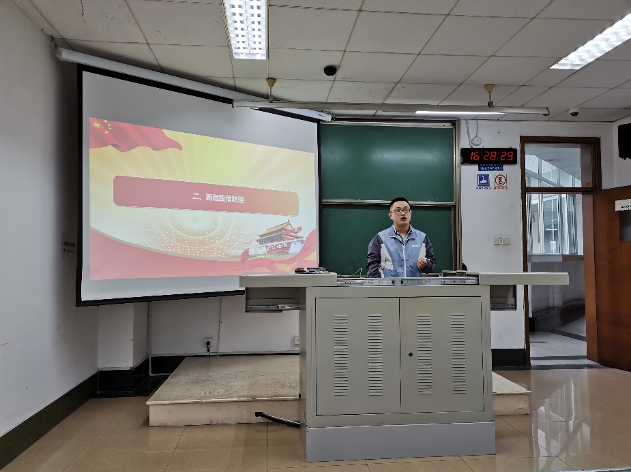 随后,支部党员尹磊又介绍了新冠肺炎的防控知识以及中国抗击疫情的历程。这是一场全人类与病毒的战争。面对前所未知、突如其来、来势汹汹的疫情, 14亿中国人民坚韧奉献、团结协作,构筑起同心战疫的坚固防线,彰显了人民的伟大力量。希望各位同学能感受到我国在抗疫历程中展现出的大国担当,学习抗疫英雄们舍己为人的高尚品质。