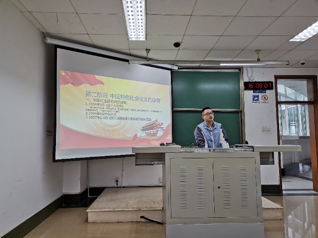 接着,支部党员尹磊对中国特色社会主义准备阶段、中国特色社会主义孕育阶段、中国特色社会主义形成阶段和中国特色社会主义发展阶段的主要历史进行了讲述。不同阶段的政策与方针、挫折与挑战、改革与发展,共同谱写了我国建设社会主义的壮丽篇章,希望各位同学能从社会主义建设史中体会和感悟到一代代中华儿女为了祖国发展不懈奋斗的伟大力量。