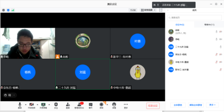 线上模拟面试于2020年11月21日19:30在腾讯会议顺利开展。参与者按抽到的号码分为2组,每组15个人,分别在2个会议房间进行小组面试。在QQ群即时通知候场的同学进入面试房间参加面试,未轮到的同学在会议等候室候场。