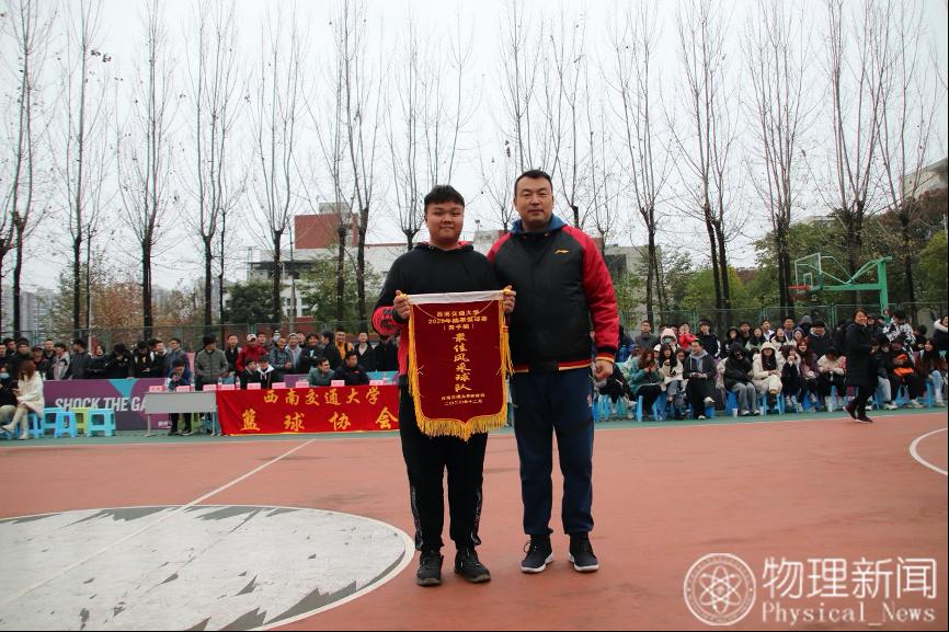 在中场休息的时候进行了颁奖环节,太阳成集团tyc122cc的王涛同学获得了最具人气球员,物理一队获得了最佳风采球队。