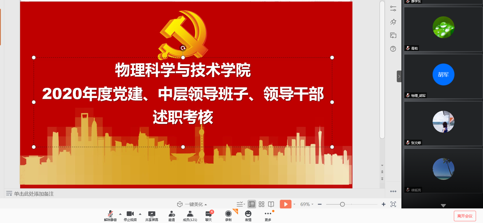 其后,班子成员依次按照述职顺序安排就分管工作做了述职报告,包括人才引进、团队队伍建设、教学科研发展及实验室建设、合作交流、工会、统战等方面,并对个人存在的问题及整改措施、党风廉政情况进行了汇报。