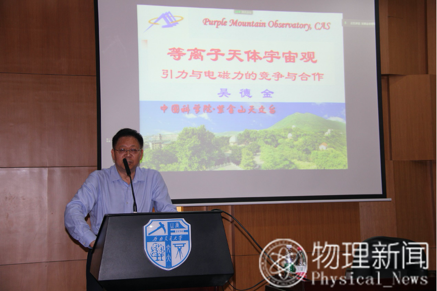 首先,贾焕玉教授为同学们介绍了本次学术报告的演讲者——来自中国科学院紫金山天文台的吴德金老师,希望同学们在讲座发掘兴趣,学有所获。随后,吴德金老师开始为同学们讲解等离子天体宇宙观。