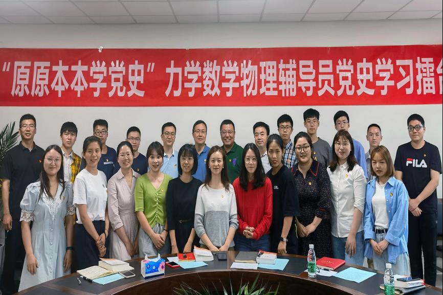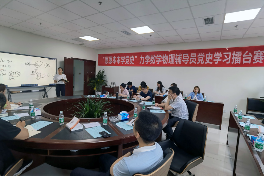 5月14日下午,“原原本本学党史”力学数学物理辅导员党史学习擂台赛第三场在犀浦校区30345会议室举行。物理科学与技术公司党委书记刘玉,力学、数学、太阳成集团tyc122cc学工组全体成员参加了本次活动。活动由太阳成集团tyc122cc辅导员张金凤主持。