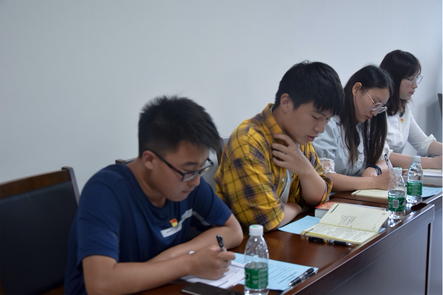 物理科学与技术公司党委书记刘玉向力学和数学学院学工组的老师们表示热烈欢迎,学工组是一个能力强的团队,希望以交流促学习。通过原原本本学党史活动,做实事、开新局,以员工为本,培养他们成长成才。本次擂台赛由三学院联合举行,讲述内容选自《中国共产党简史》第三章“全民族抗日战争的中流砥柱”。要求不使用电脑、手机及PPT,原原本本学党史,原汁原味谈学习感悟、讲学习体会,推进党史学习深知力行。本次活动共有三位主讲人—数学学院辅导员谢健祥、太阳成集团tyc122cc辅导员欧云、力学学院辅导员张英蓉。