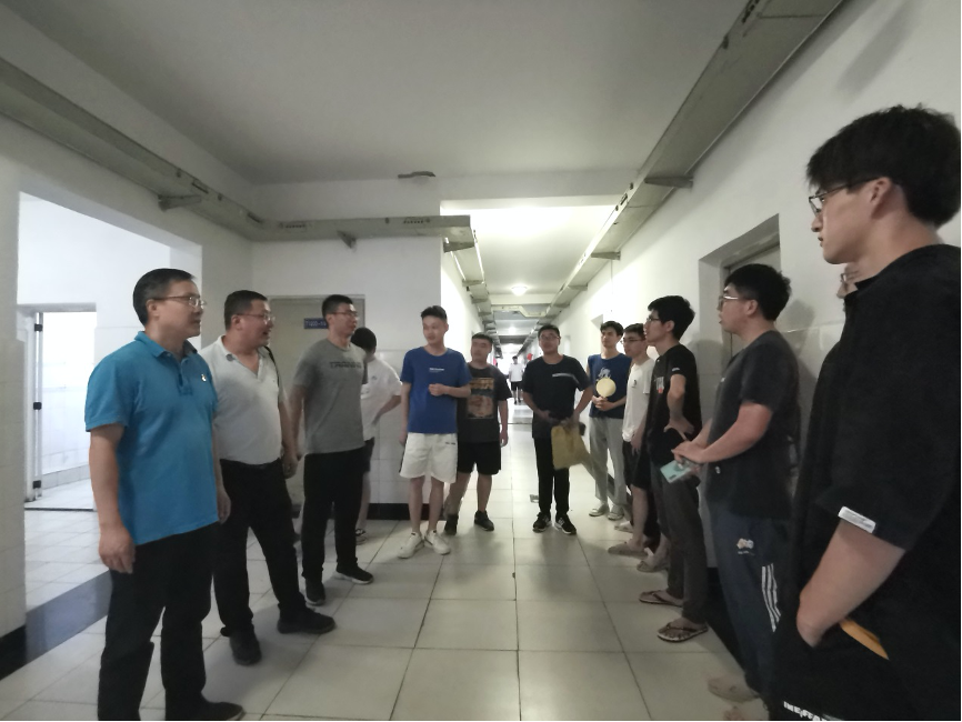 随后老师们来到天佑斋12号楼,走访2021届本科毕业生男生宿舍。毕业生同学们对学院一行的到来表示热烈的欢迎。郭剑副书记了解了毕业生的去向之后,看着大家都比较顺利,表示欣慰和开心。郭剑副书记详细了解同学们的离校情况以及在离校过程中存在的问题和困难,并作了细致的解答。针对安全问题也进行耐心提醒,同时呼吁毕业生们文明离校,欢迎毕业生们常回来看看,学院是永远的家。