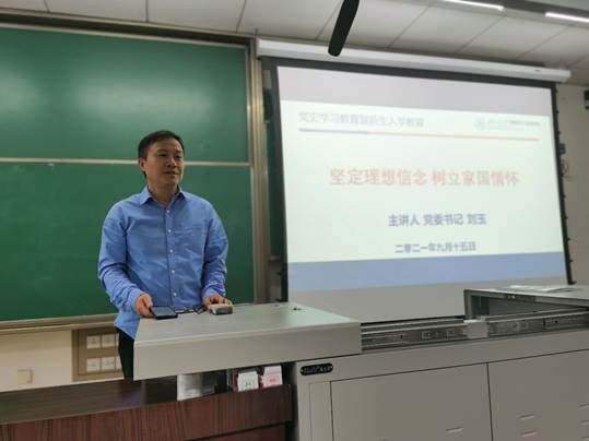 9月15日下午,物理科学与技术公司党委书记刘玉在九里校区4323教室为134名研究生新生开讲思政第一课。刘书记以《坚定理想信念,树立家国情怀》为题,号召新时代青年要在当今世界正经历百年未有之大变局中,要自主创新,勇攀世界科技高峰,传承红色基因,矢志报效祖国,坚定不移听党话跟党走;坚持“四个面向”,不断提高原始创新能力,立志解决国家“卡脖子”难题;发现新问题、研究真学问,敢于攻坚克难,不断续写物理人科技创新事业的新篇章。