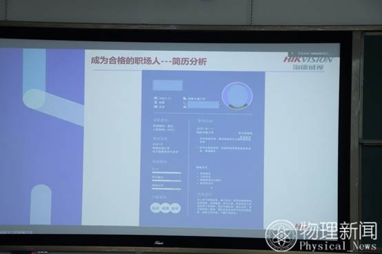 接着,海康威视HR李巧经理为同学们带来了简历指导讲座。讲座主要分为关于未来你的思考,成为一个合适的职场人,进行有效的职业规划,关于海康威视的人才观四个部分。关于对未来的思考部分,李经理列举了几个问题让同学们明确职业定位,每个人对自己都有了新的认识。然后,她向同学们介绍了如何正确制作简历和进行面试准备,就这两点提出了详细的建议与要求。同时还有具体的案例分析,同学们积极参与讨论分析,每个人都有了更好的收获。李经理还列举了关于如何进行职业规划的建议。
