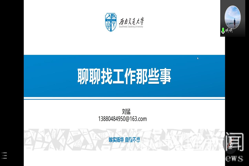 会议伊始,刘猛学长通过国外,国内,市场以及毕业生四个方面,介绍了就业形势与背景。他表示,目前中国的“交通强国”、“教育强国”和“一带一路”倡议,使得当代老员工就业拥有了很大的机遇;然而国内经济发展不平衡,新冠肺炎和中美贸易战对部分产业造成的冲击使得当代老员工就业又面临着巨大的挑战。他丰富的阅历以及合理运用身边典型的例子的方法,让同学们深刻了解到当下创新创业的背景和形式。