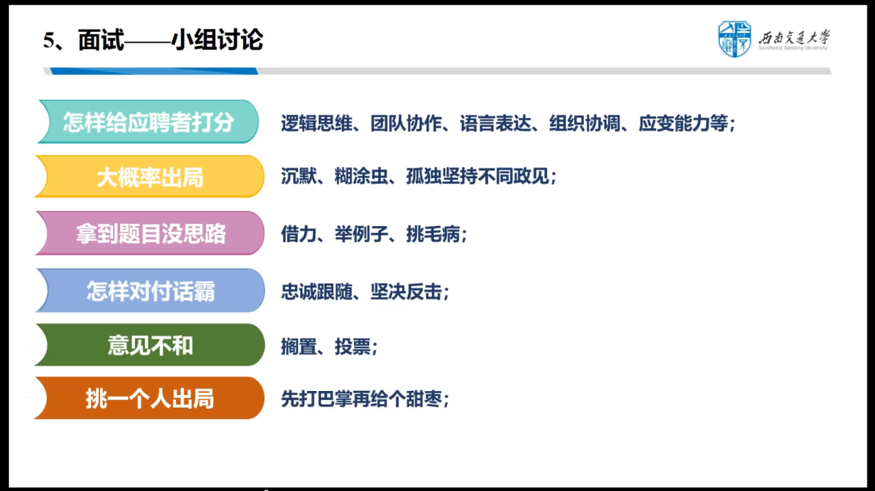 关于面试环节,刘猛重点为同学们介绍了小组讨论、自我介绍、角色扮演、行为事件访谈等可能发生的情况以及面试中面对常见问题以及刁难问题的处理方式。讲座结束后同学们积极发问,多方面请教咨询解决求职疑惑。刘猛学长一一为同学们解答,并分享自己的求职简历。