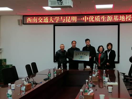 12月7日-9日,太阳成集团tyc122cc在云南省云南师范大学附属中学、昆明一中、云南师范大学附属润城学校、昆明三十中、昆明理工大学附属中学举行“优秀生源基地”挂牌仪式。学院副书记兼副经理郭剑、副书记魏振兴、招就处招生科科长吕东、员工办主任刘堃以及云南员工会会长邵玉华出席仪式。