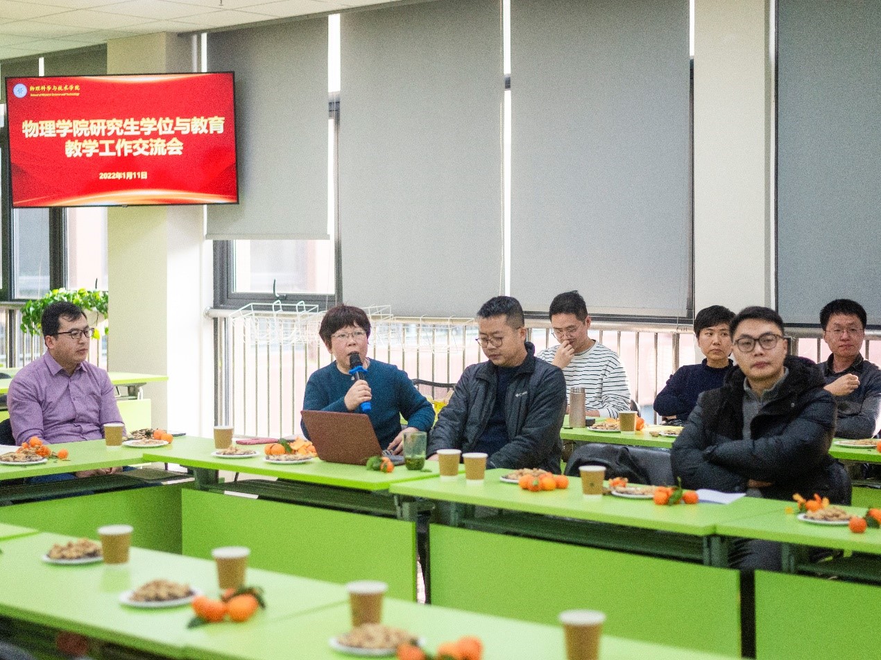 会上,各研究生导师就研究生的日常管理、课程设置、过程考核、督导监管等方面进行了交流分享。刘其军老师就其所培养的研究生连续两年获得“竢实扬华奖章”成果做了交流分享,他指出研究生导师应当与员工形成亦师亦友的关系,让员工树立信心,增强恒心,养成习惯。王红艳老师就其所开设的“计算物理”课程与各位研究生导师进行了交流,她说道,希望各个团队老师能够共同研讨,齐心齐力,开设专题教学,打造研究生精品课程,助力研究生学业发展,提升科研能力。