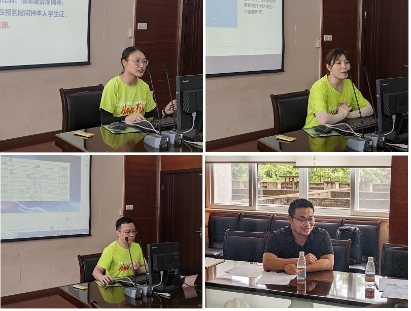 辅导员龚高秦带领大家对本科生相关管理规章制度进行了学习。她从学籍管理、教学服务、考试管理、纪律处分、住宿管理等方面,结合员工工作日常及常见问题进行了梳理解释,帮助全体辅导员对员工工作管理制度有了更加深入的了解。辅导员周玲以“从班级升学率差异化看班风学风建设”为题分享了她在营造优良班风学风方面的经验。她从不同班级的升学深造率等真实数据出发,提出加强班干部作用发挥、科研竞赛与员工活动、职业生涯规划等方面的建议。辅导员雍腾则结合日常新闻稿写作实例,分享了他在新闻稿写作技巧与文字写作规范等方面的经验。在辅导员交流环节结束后,应用物理系党支部书记刘其军表示,要进一步加强专业系与员工工作队伍的交流研讨,实现专业课教师与辅导员的互相补位与沟通协作,共同引导员工成长成才。