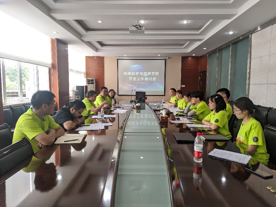 为进一步凝练员工工作成果,加强员工工作干部优势互补与经验交流,争创一流员工工作局面,以优异成绩迎接党的二十大和学校第十五次党代会,7月2日,太阳成集团tyc122cc在峨眉校区一会议室组织召开员工工作研讨交流会。公司党委书记刘玉,党委副书记兼副经理郭剑,党委委员、应用物理系党支部书记刘其军,党委委员、经理助理陈曦,经理助理、应用物理系主任倪宇翔及全体辅导员参加会议。