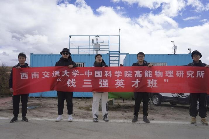 (“钱三强英才班”的同学和LHAASO望远镜阵列工作的师生合影)