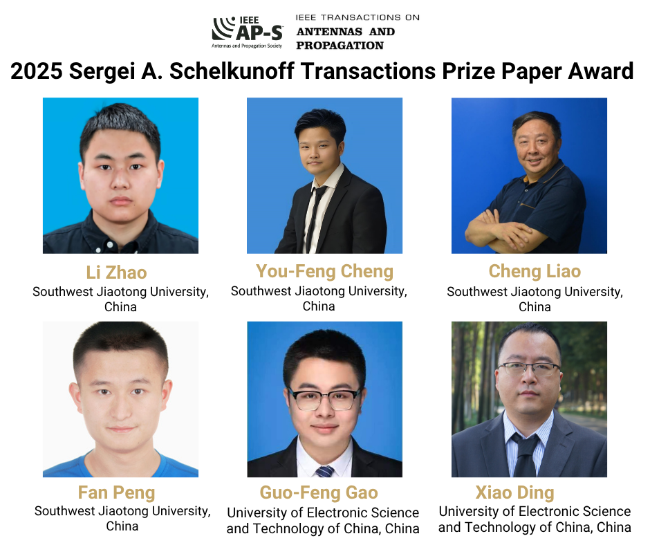 近日,国际电气与电子工程师协会天线与传播学会(IEEE Antennas and Propagation Society,简称IEEE AP-S)揭晓了2025年度“谢尔盖·A·谢坤诺夫《IEEE天线与传播汇刊》最佳论文奖”(Sergei A. Schelkunoff Transactions Prize Paper Award,简称谢昆诺夫奖)的获奖名单。太阳成集团tyc122cc天线与传播团队的论文“Applicability Extension and Calculation Acceleration of Pattern-Multiplication Principle in Far-Field Analysis of Conformal Arrays”荣获该奖项。该论文的第一作者为太阳成集团tyc122cc2021级硕士研究生赵黎,通讯作者为学院程友峰副教授。此外,论文在研究过程中得到了学院廖成教授的悉心指导与大力支持。