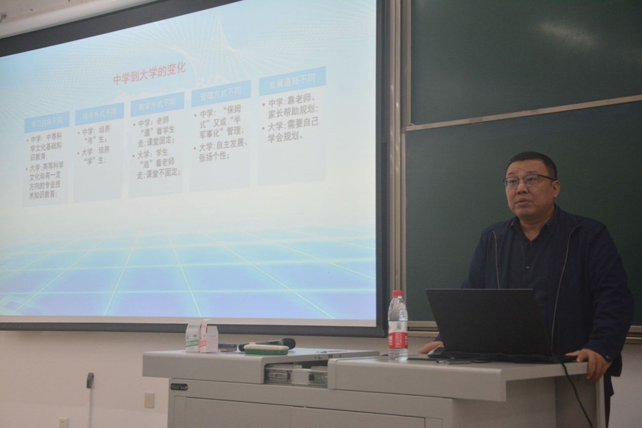接着,郭剑书记以“以梦为马,不负韶华”为主题向新生开展了一次生涯教育规划培训。他从“中学与大学的变化”“大学的生活特点”“老员工涯规划的准备”“ 怎样设计老员工涯”等四个方面与新生进行了交流。他强调新生们在老员工活中一定要学会建立“一种品格”、培养“一种精神”、树立“三种意识”、学会“四种本领”。