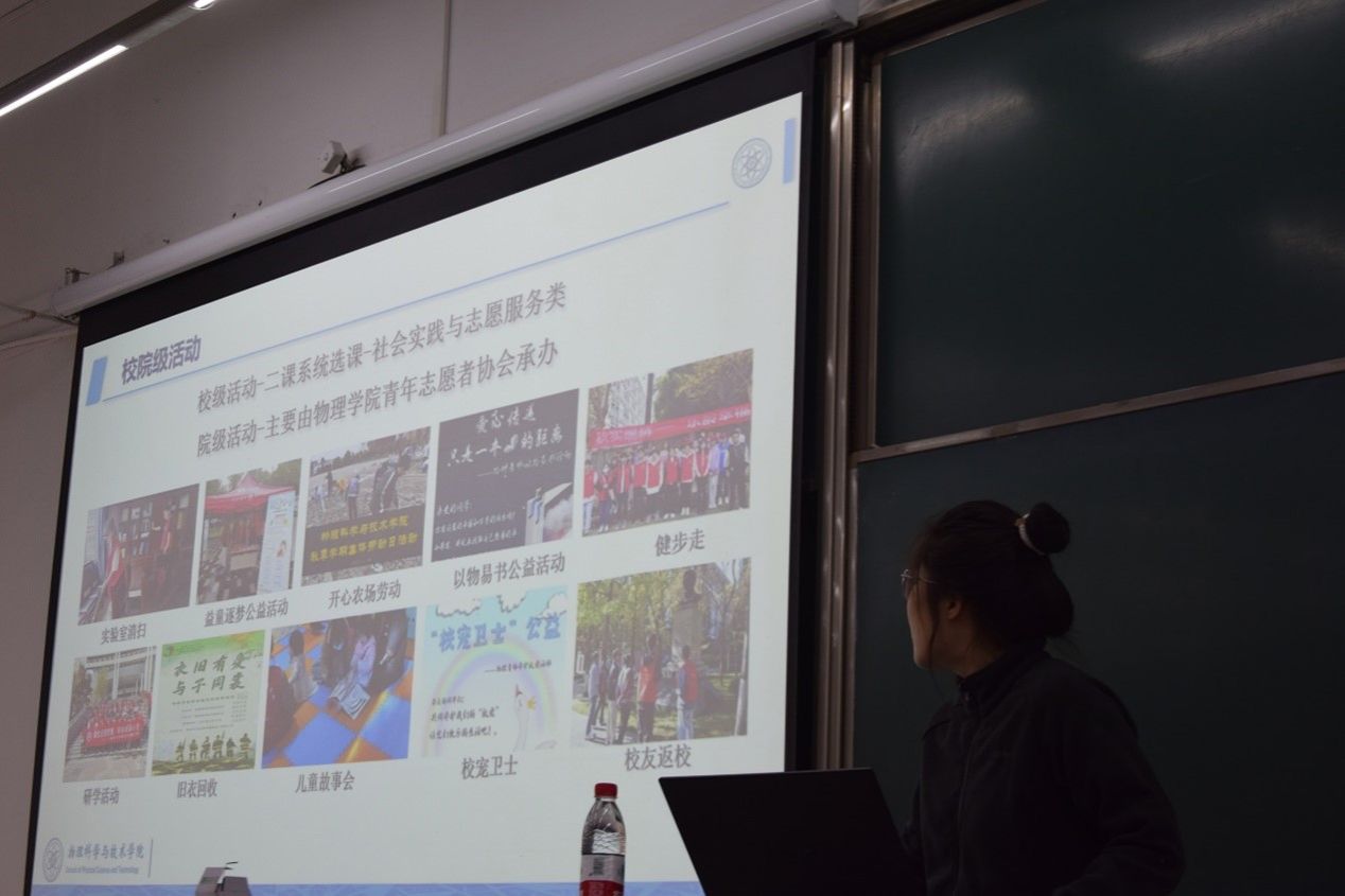 大会的第三项议程,由葛田田老师给新生同学进行“第二课堂”专题解读。她详细解读了《本科生综合素质评价办法(试行)》,对德育、智育、体育、美育、劳育五个方面的学时要求和具体评价方法都一一解释,并强调了德智体美劳五个方向全面均衡发展的重要性。