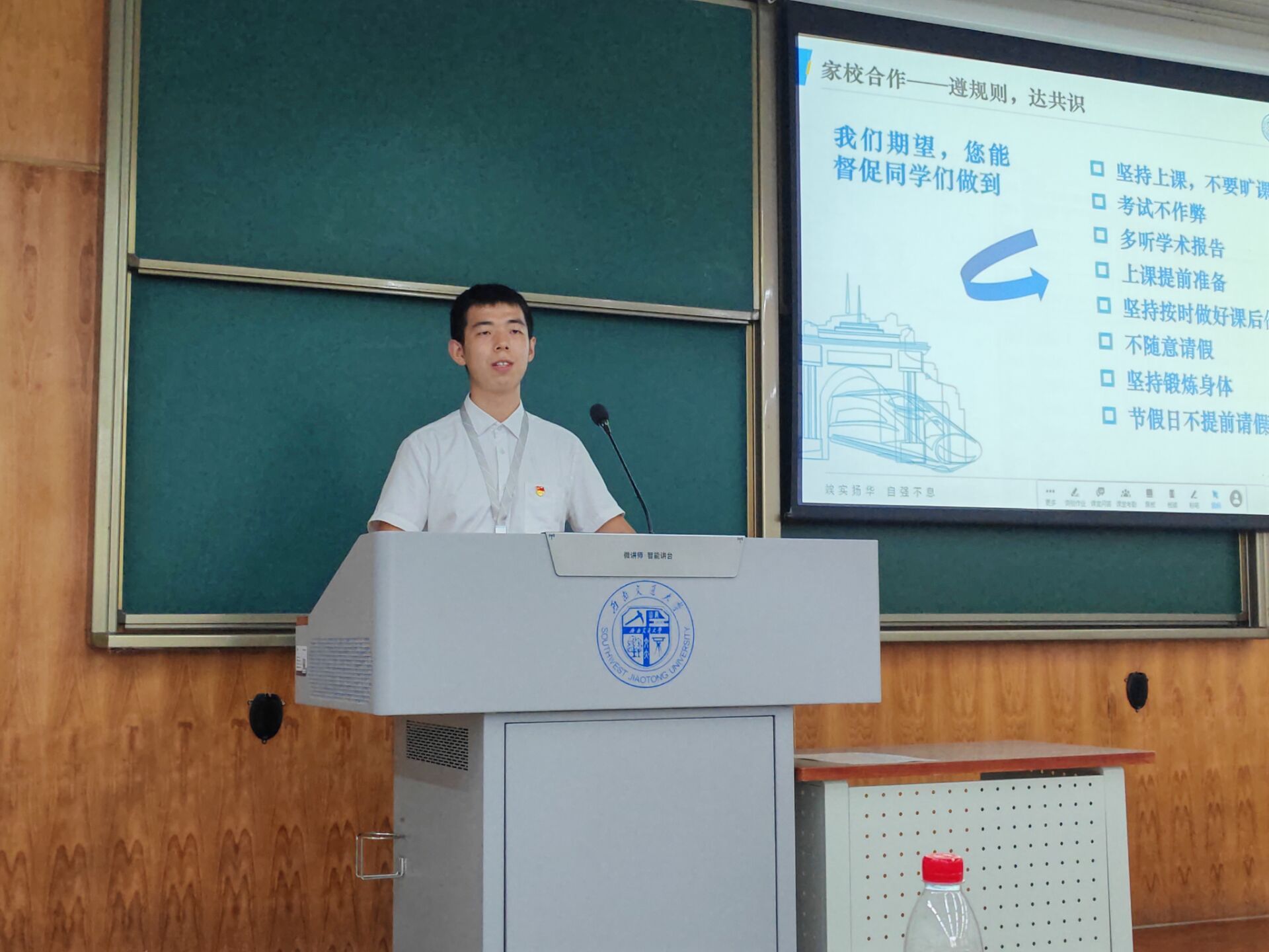 辅导员交流环节,应用物理系辅导员夏荣林通过大学与中学的区别对比的形式,详细介绍了学校重要的员工管理规定,包括学业要求、行为规范、考评机制等,帮助家长更好地了解学校的管理体系。