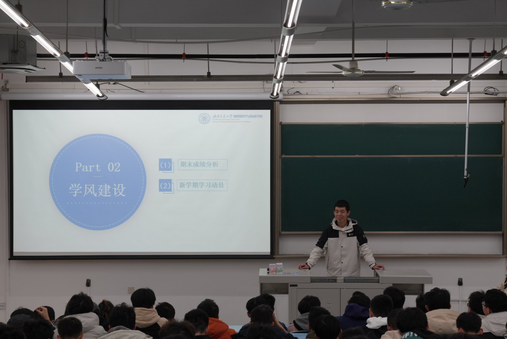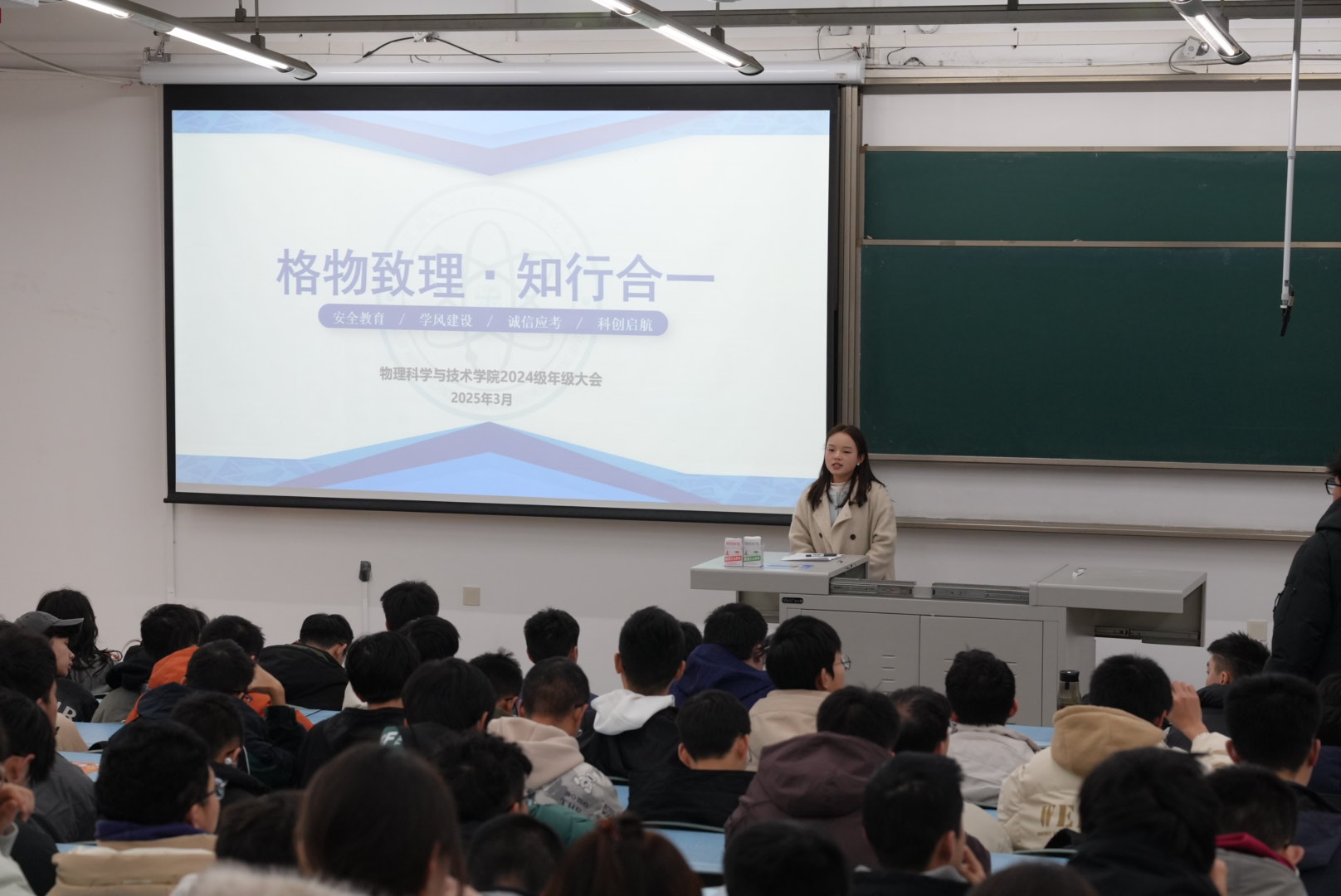 3月6日下午,物理科学与技术公司在犀浦校区X2218教室召开2024级年级大会。本次大会围绕科创竞赛规划、学业总结动员、安全教育三大主题展开。会议由辅导员夏荣林主持,杨言鑫、陈骥清两位老师主讲,全体2024级本科生到场参与。