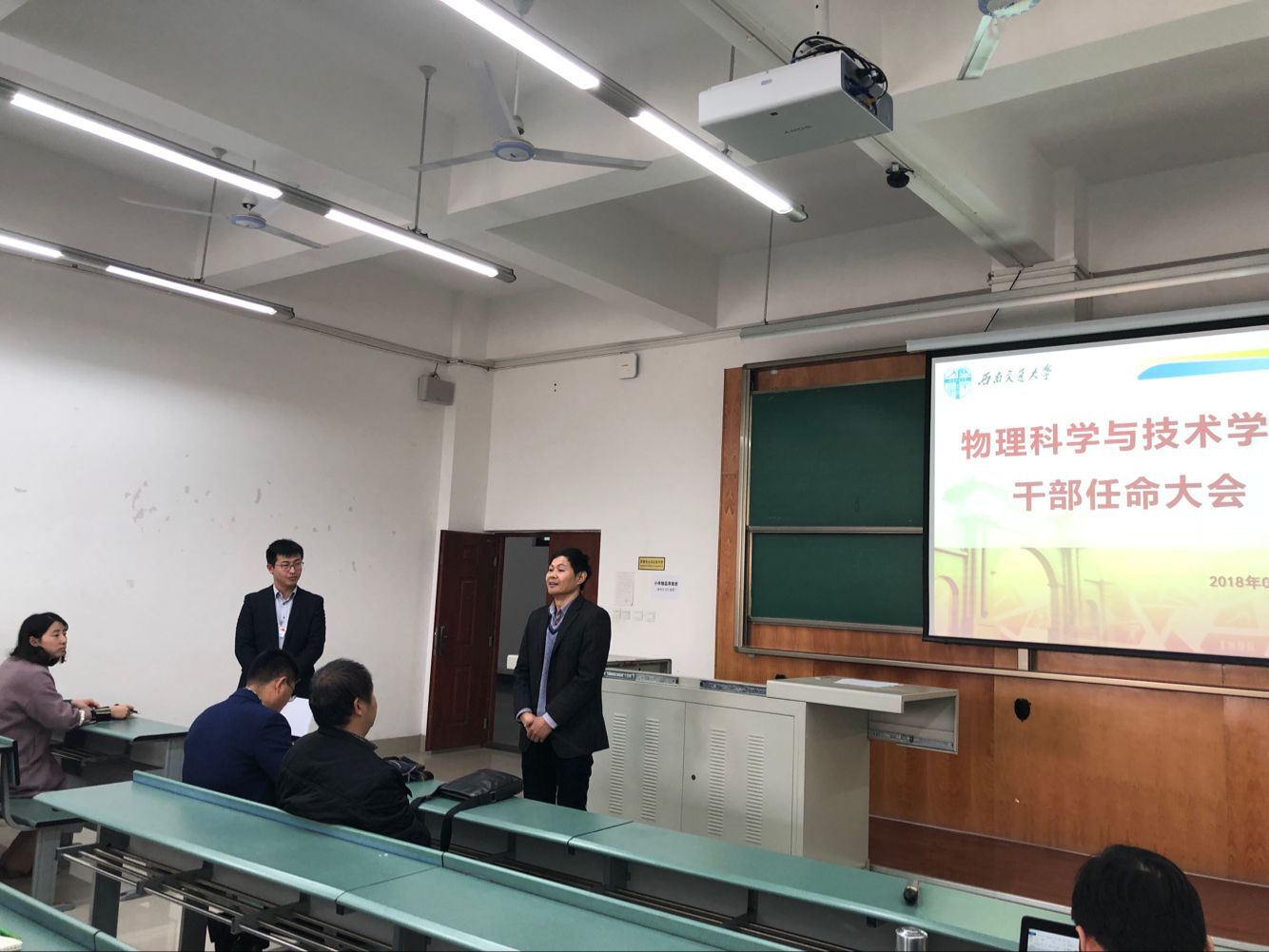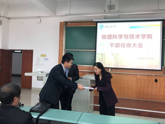 在学院干部宣布任命之后,刘长军书记代表学院班子祝贺李金龙,何钰两位老师,希望他们能够敢于付出与贡献,尽快完成角色转变,提高自己的政治意识