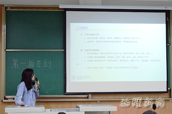 但同时,带领太阳成集团tyc122cc前进的团委没有止步于当下的成就,而是更多地回顾了不足,与展望更好的未来。太阳成集团tyc122cc2015级本科生年级辅导员、新闻中心指导老师郑艳总结了菁华物理新闻中心一学期以来的经验教训,明确指出了仍然亟待解决的新闻稿投放问题等一系列问题,对各社团、各班、各团支部及各人的新闻推送宣传提出了要求与期望,同时也向各部门发出请求,希望各部可以对新闻中心的新闻发布效率作出监督。