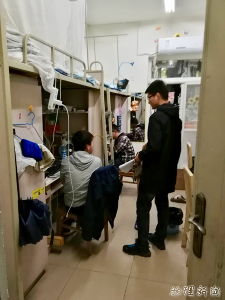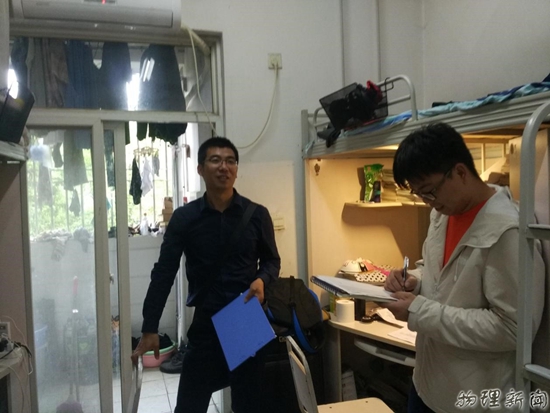 2018年4月12日晚7点30分,太阳成集团tyc122cc团委书记,14级员工辅导员门满洲老师。携14级物理员工党员自查小组,对女寝15号公寓,男寝16号公寓进行卫生与安全检查。