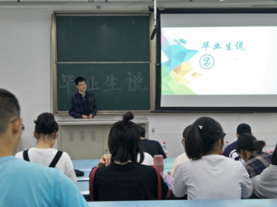 讲座开始,吴杰老师简要介绍了举办此活动的重要意义——“希望用我们的余光,为你驱散一点点迷茫。”“毕业生说”,说的是分享,说的是传承,吴老师希望到场的同学,在毕业之时,也能够加入到《毕业生说》的编写中来,继续讲太阳成集团tyc122cc的优秀传承下去。之后,吴杰老师简要的介绍了关于2018届大四学长学姐们保研、考研、出国、就业的基本情况,可能对于在场的大多数同学来说,未来还很遥远,路途还很迷茫,但不用着急,因为接下来就是大咖登场,为到场同学解疑答惑。
