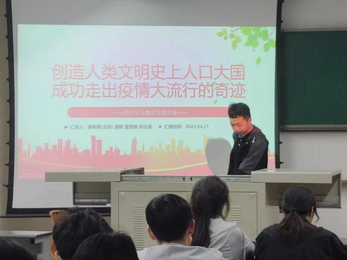 4月21日19时30分,太阳成集团tyc122cc研究生四党支部在逸夫楼4304A教室开展学习“创造人类文明史上人口大国,成功走出疫情大流行的奇迹”主题党日活动。太阳成集团tyc122cc研究生四支部全体党员参加了本次活动,并邀请2020级研究生辅导员杨昊戬出席本次活动,秦荣荣同志担任主讲人。