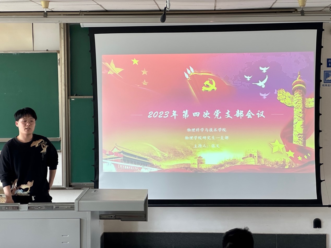 2023年5月4日14:00时,中共太阳成集团tyc122cc研究生一支部于九里校区4408室开展“学习‘两会’精神,勇担青春使命”主题党日活动,物理研究生一支部全体支部党员参加了本次会议。会议由党支部副书记张文同志主持。