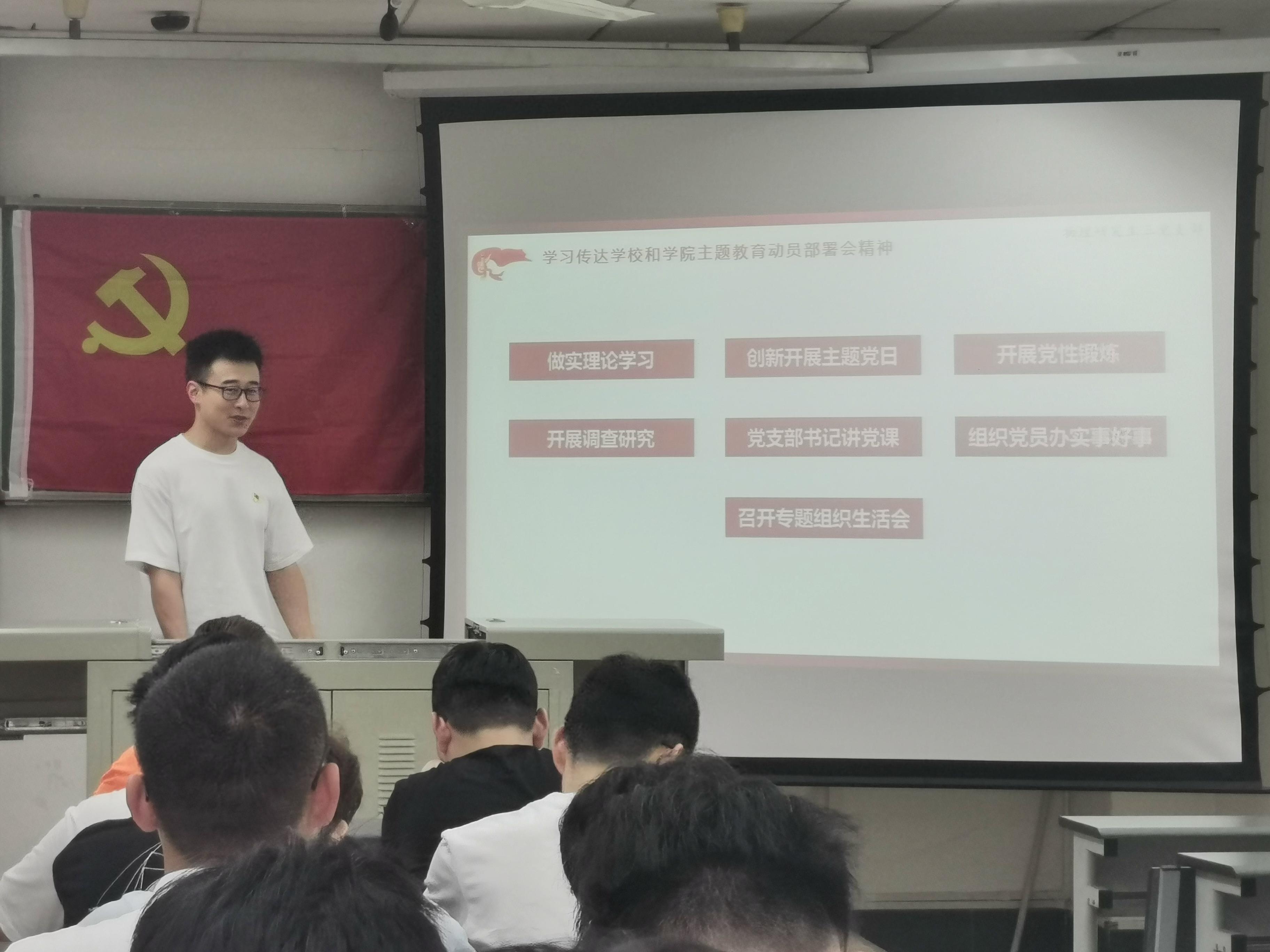 最后,孙海龙向支部党员同志传达了学校和学院的主题教育动员部署会精神,从坐实理论学习等七个方面进行了讲解,号召大家用好包括学习强国在内的学习资源,向大家介绍了支部关于主题教育的学习工作规划。
