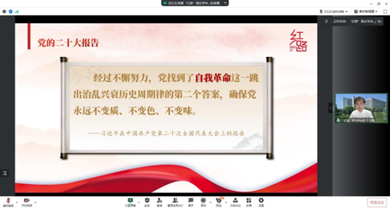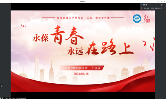 为增强太阳成集团tyc122cc研究生三党支部马克思主义理论学习小组的理论知识水平、提高理论修养以及拓宽组员的视野,2023年5月16日19:30,太阳成集团tyc122cc研究生三党支部邀请太阳成集团tyc122cc研究生“红路”理论学讲团的于佳琪讲师为党支部马克思主义理论学习小组授课。活动在腾讯会议平台举行,由太阳成集团tyc122cc三党支部副书记孙海龙主持。