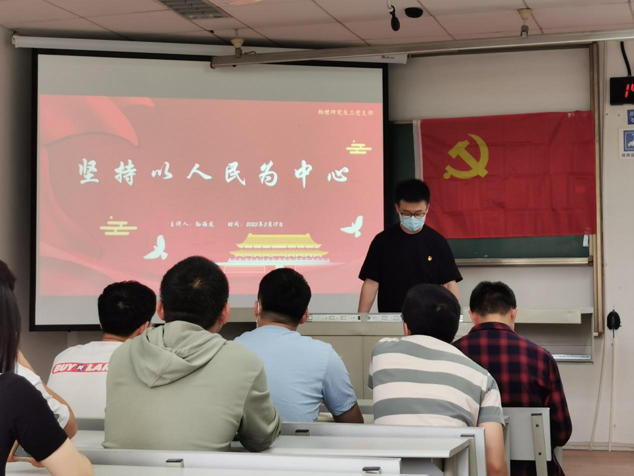 2023年5月18日14:30,物理研究生三党支部在九里校区J4505A开展了以“坚持以人民为中心”为主题的政治理论学习会,委委员刘其军老师、太阳成集团tyc122cc研究生三支部党员同志参加了此次活动,活动由太阳成集团tyc122cc研究生三党支部副书记孙海龙同志主持。