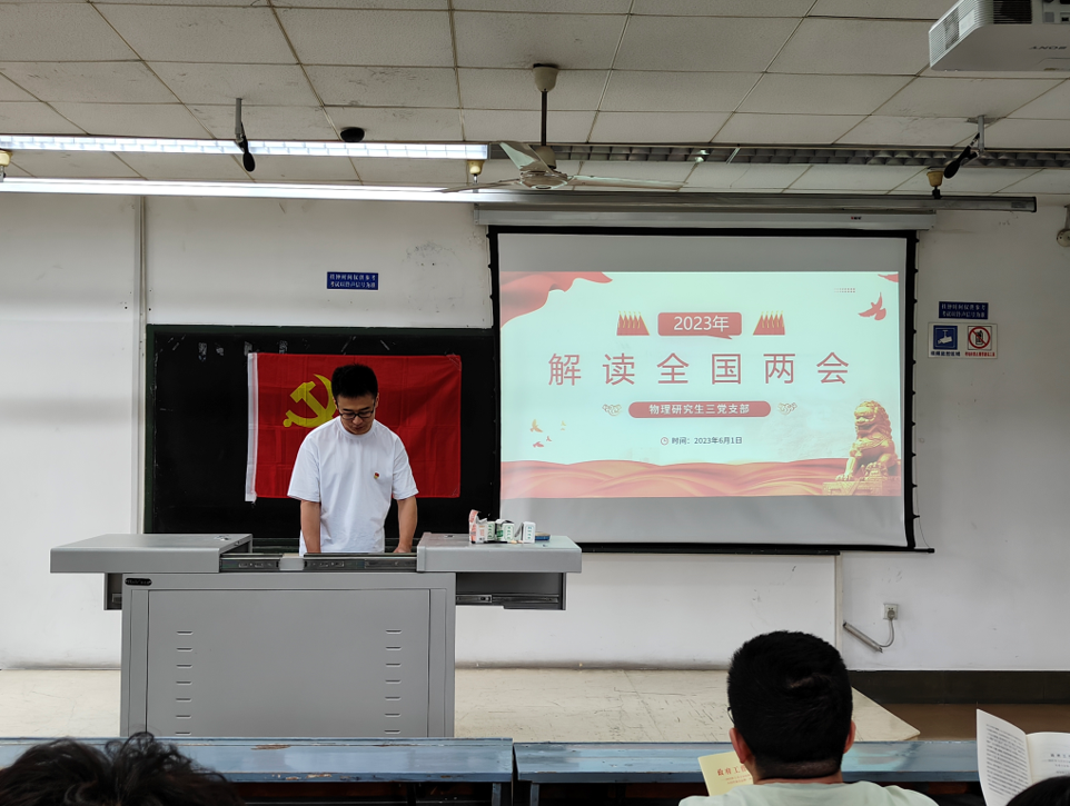 为深入学习贯彻全国两会精神,2023年6月1日15:25,太阳成集团tyc122cc研究生三党支部马克思主义理论学习小组在九里校区J4407A举办“共同学习全国两会精神”主题党日活动,活动由太阳成集团tyc122cc研究生三党支部副书记孙海龙主持。
