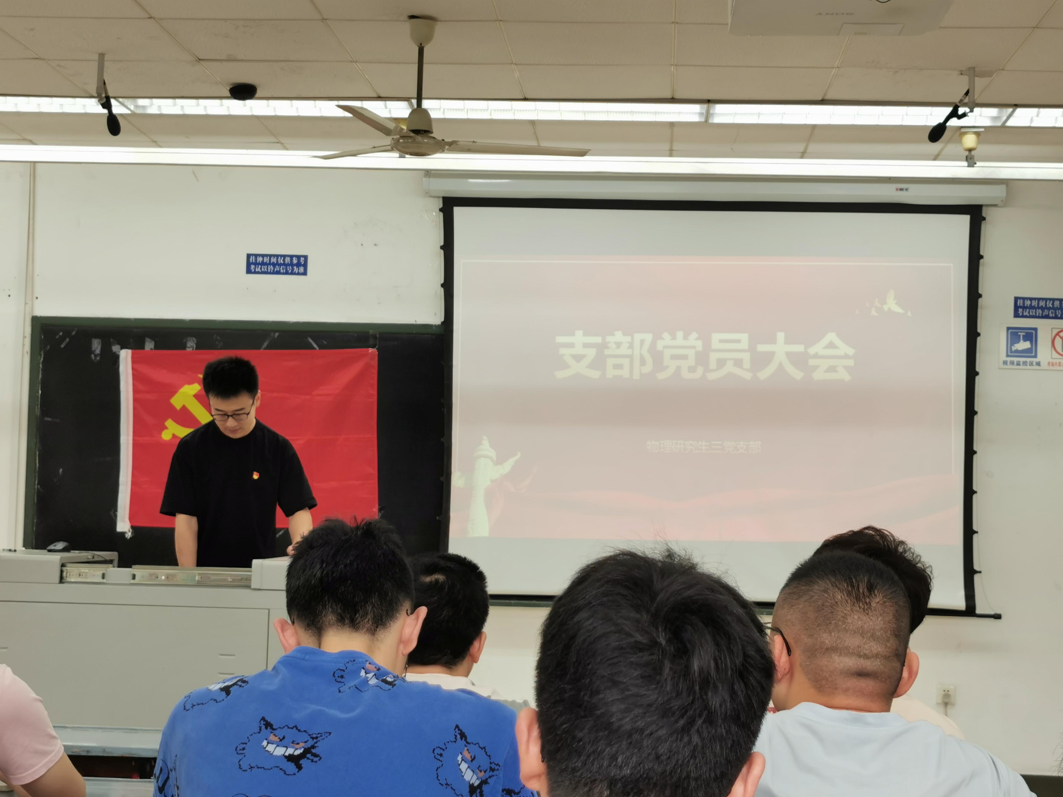 2023年6月23日14:00,物理研究生三党支部在九里校区J4407A召开预备党员转正大会。本次会议由太阳成集团tyc122cc研究生三党支部副书记孙海龙同志主持。