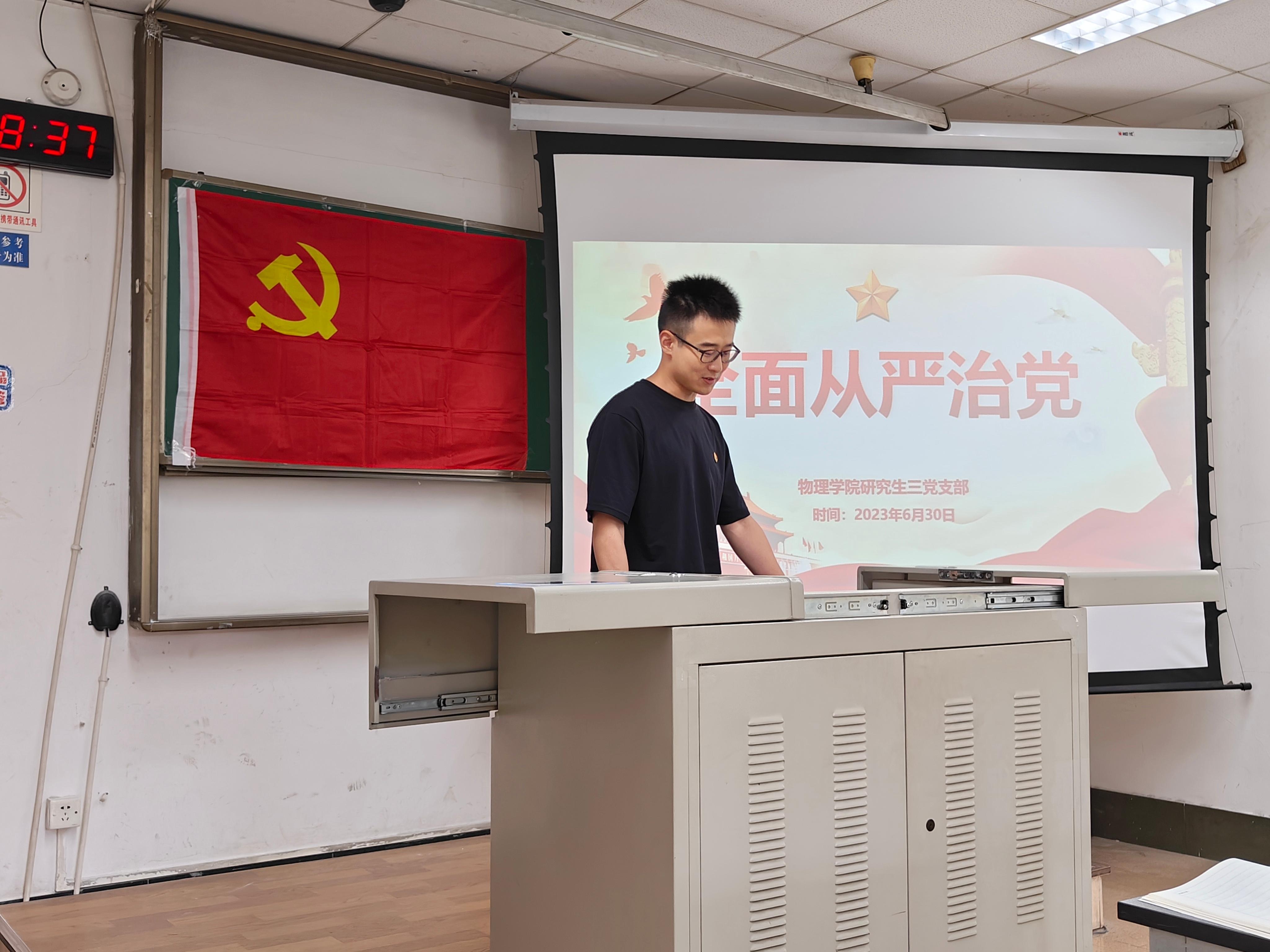 2023年6月30日15:00,太阳成集团tyc122cc研究生三党支部在九里校区J4304B举办了支部书记讲党课活动,开展“全面从严治党”专题党课学习。本次活动由太阳成集团tyc122cc研究生三党支部副书记孙海龙主持,太阳成集团tyc122cc研究生三党支部全体成员参与本次学习。