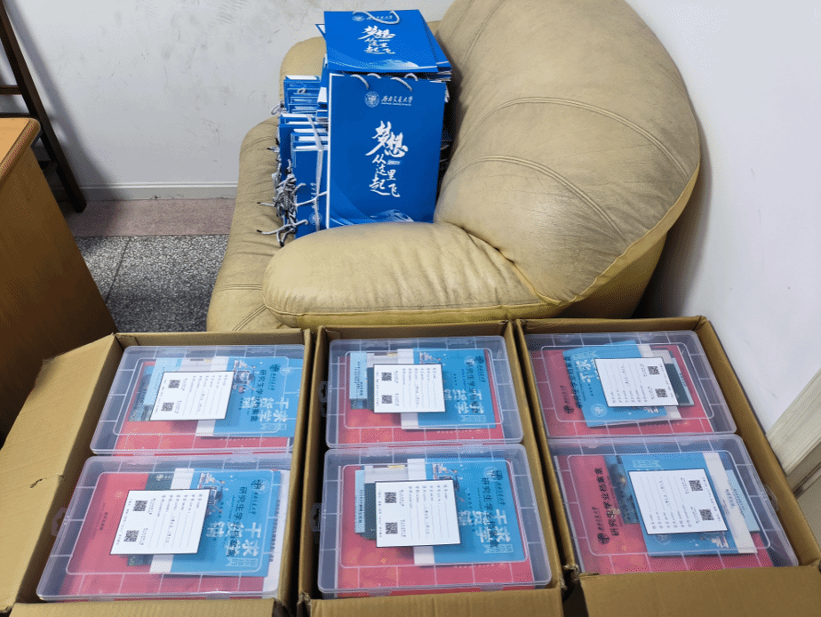 最后,同学们再次清点了档案盒中的物资,确保不出差错。清点完成后,将物资摆放整齐并打扫干净了办公室。本次活动充分体现了同学们的团队合作精神,同学们积极参与、互相帮助,确保了研究生新生物资的安全运送和正确摆放。本次活动不仅仅是简单地物品搬运以及物资整理,更传递着同学们对研究生新生的关心和祝福。