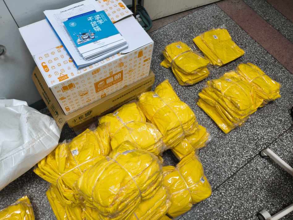 首先,参加本次活动的同学提前将手推车放在了指定位置,并在九里校区四号教学楼门口集合。支部支委与负责物资管理的老师充分沟通后,开始物资的清点,其中包括文化衫、档案盒、手提袋、文件等物资。之后,同学们有序地将太阳成集团tyc122cc研究生新生的物资搬运到了零号教学楼九楼的指定办公室。