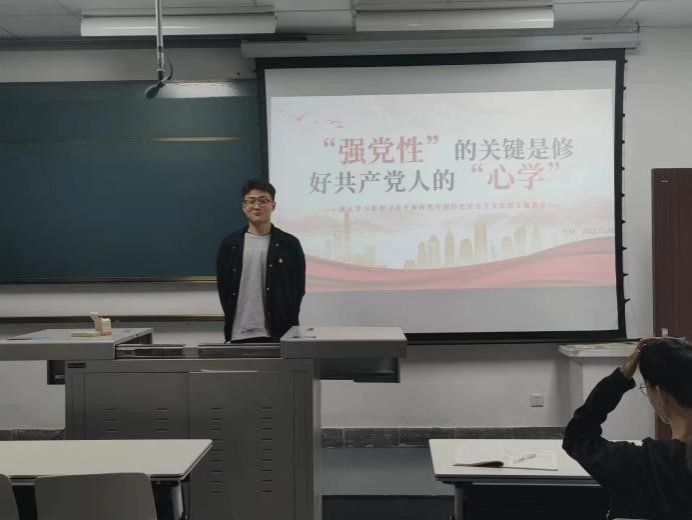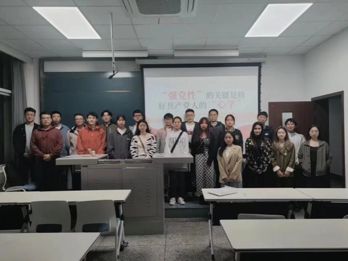11月1日19:30,太阳成集团tyc122cc研究生四党支部在九里校区J2603开展了以“强党性”为主题的党日活动,太阳成集团tyc122cc研究生四党支部指导老师杨昊戬、书记夏荣林和全体研究生党员参加了此次学习活动,会议主要内容是由第三组成员刘云萱进行领学分享。