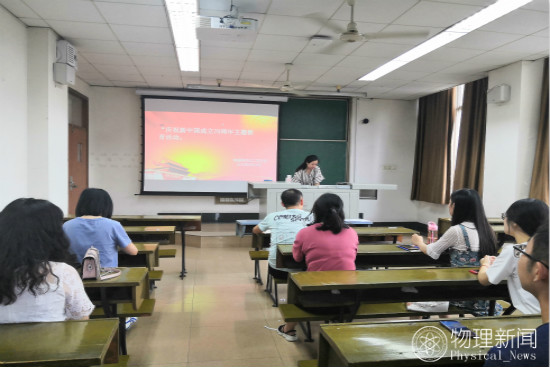 2019年8月29日下午4点,物理研究生二党支部于逸夫楼4520教室开展了“中华人民共和国成立70周年”主题组织生活会,全体党员参加了会议。会议由郑平平同志主持,会议主要内容是回顾新中国成立的历史事件,学习中国七十年以来的光辉历程与取得的伟大成就。