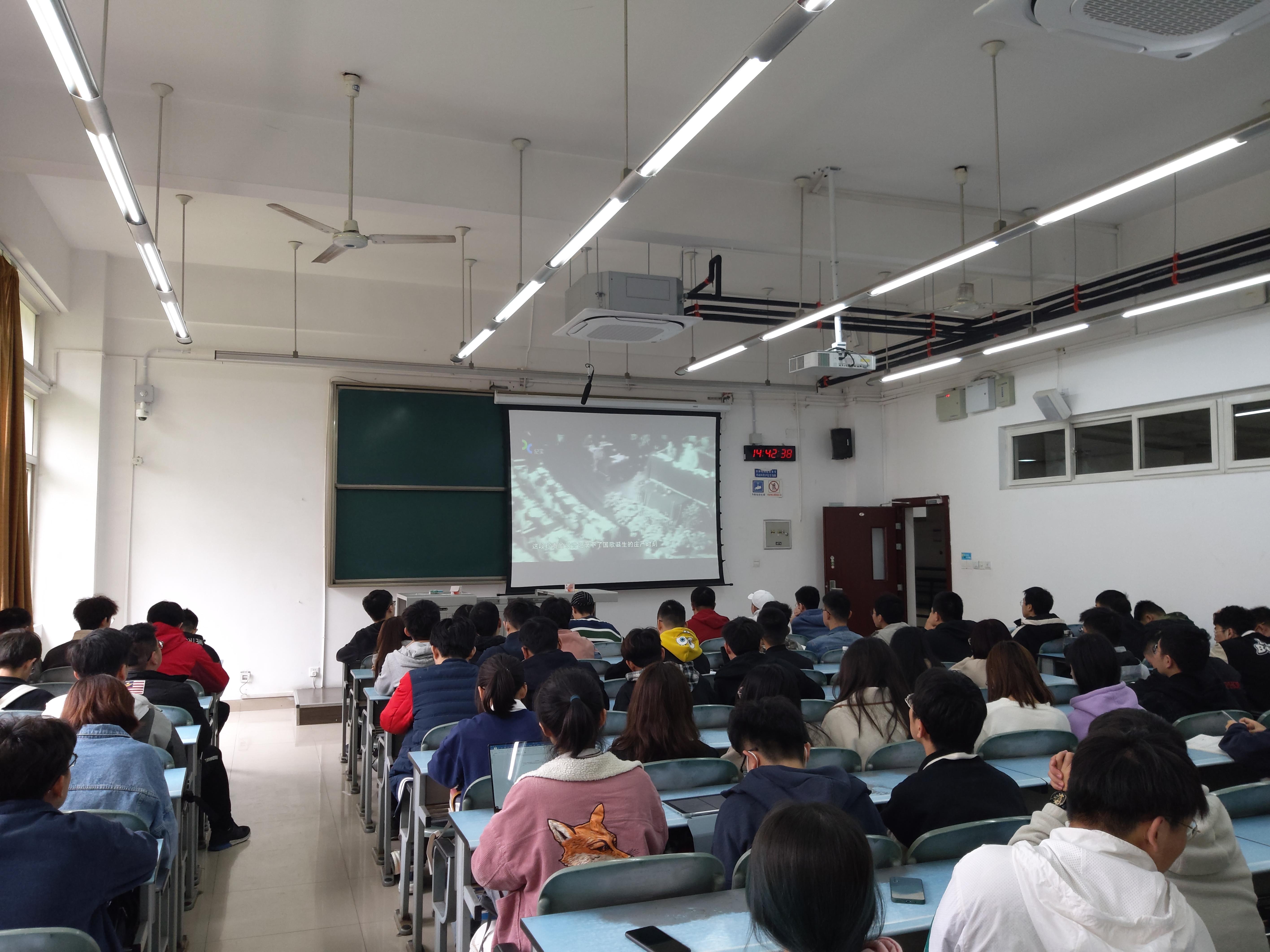 随后,全体同志认真观看了《国歌往事》纪录片,认真学习了从创作《义勇军进行曲》到被选为国歌的始与末。几位同学代表分别发言,结合自身实践畅谈心得体会。