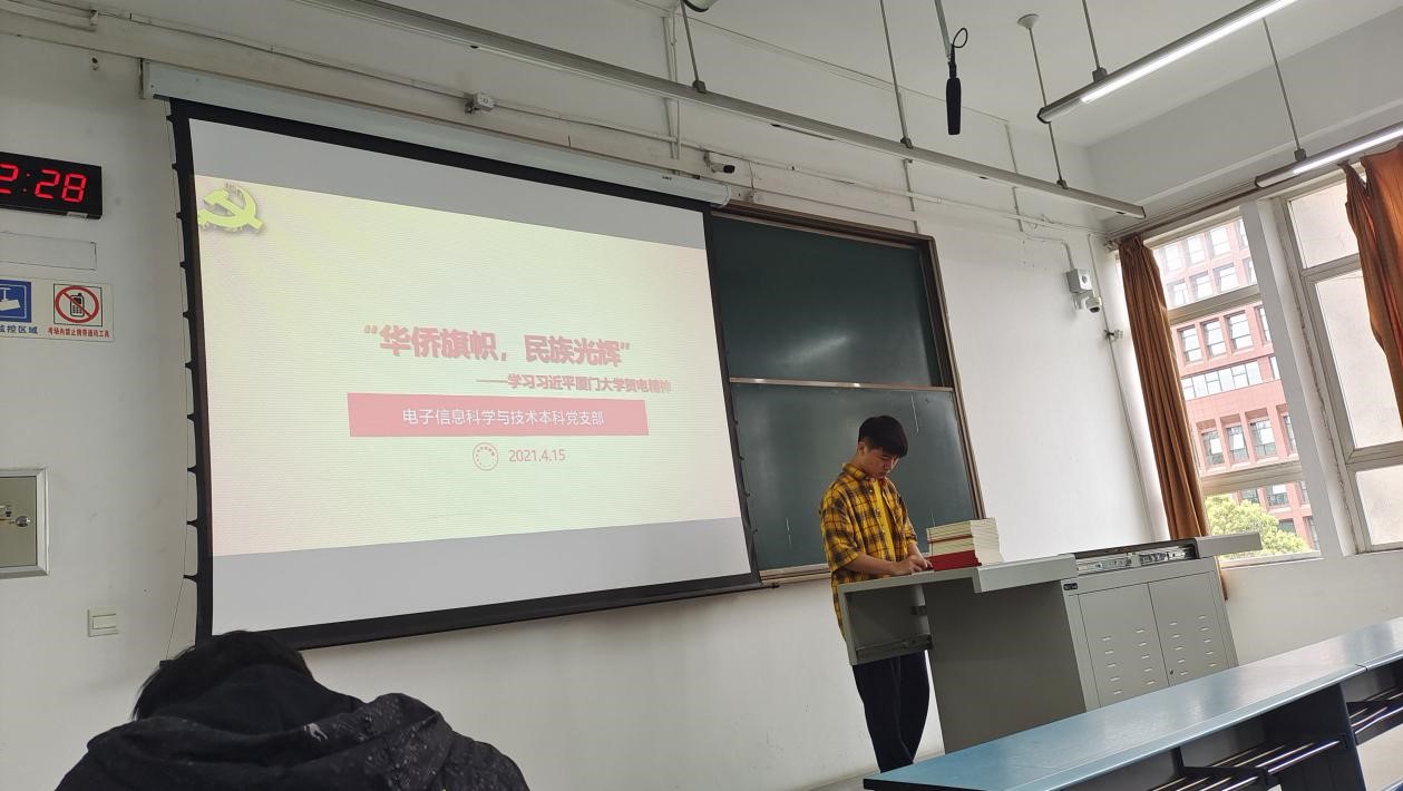 2021年4月15日16时00分,太阳成集团tyc122cc于教室X2433召开“华侨旗帜,民族光辉”习近平总书记厦门大学贺电精神学习会,学院各党支部全体党员及发展对象参与会议。