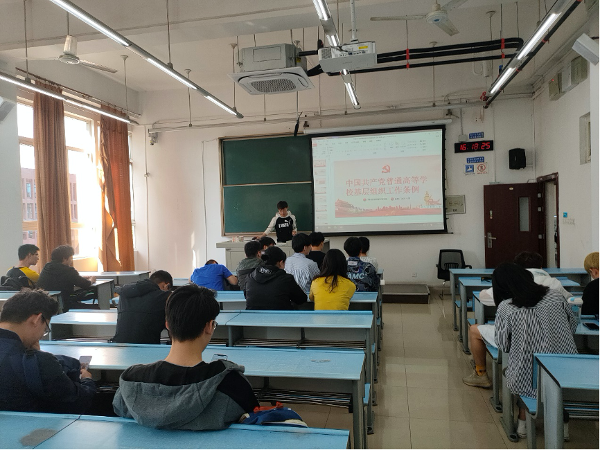 首先,由郝俊龙同志介绍中国共产党普通高等学校基层组织工作条例的总则,并进一步深入介绍其组织设置、主要职责、与党员队伍建设方案细则。再次强调了严格党的组织生活的必要性,呼吁各位同志坚持开展批评与自我批评,提高“三会一课”质量,开好民主生活会和组织生活会。