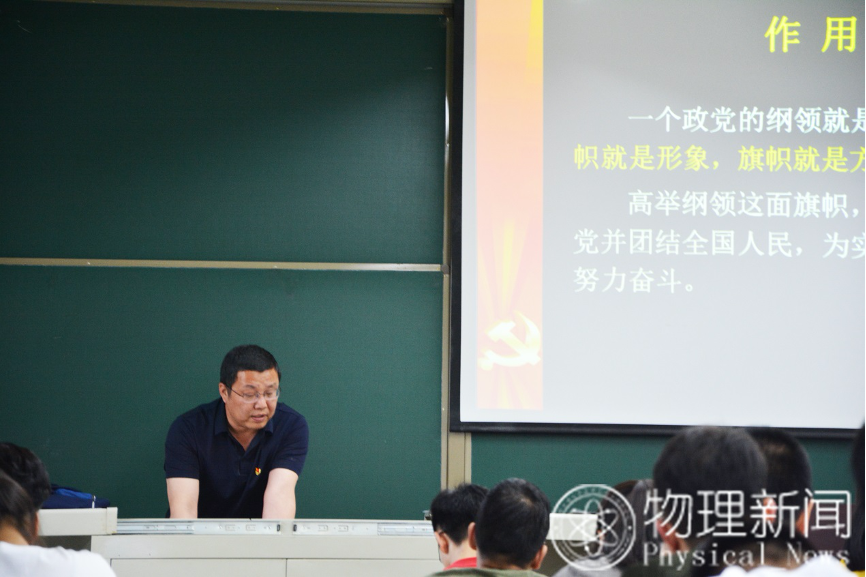 接着,郭剑老师向同学们详细地介绍了中国共产党的纲领以及奋斗目标,他从党的指导思想、基本理论、基本路线和现阶段以及最终奋斗目标等方面展开,全方面的介绍让同学们对其印象更加深刻。